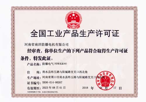 防爆電機生產(chǎn)許可證