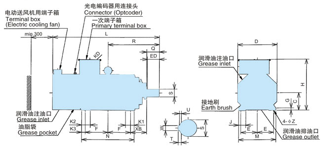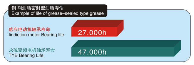 因?yàn)檗D(zhuǎn)子幾乎不發(fā)生損失,所以軸承溫度較低,密封油脂壽命大約延長(zhǎng)至本公司YVF2系列變頻器專用IM的