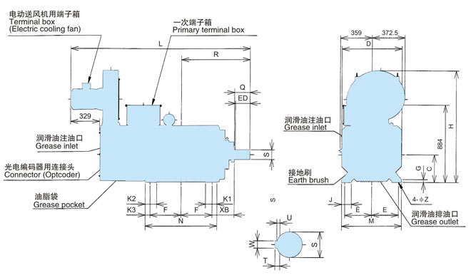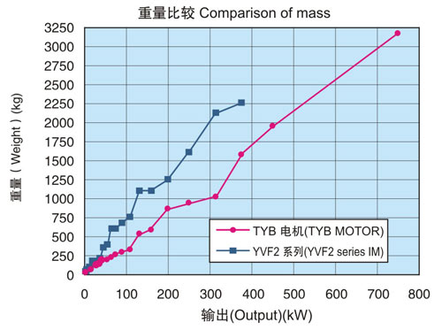 在同一輸出下中心高度比本公司YVF2系列變頻器專用IM下降2格。另外,電機(jī)重量也有大幅度減輕。(與本公司YVF2系列變壓器專用IM相比減輕32-57%)