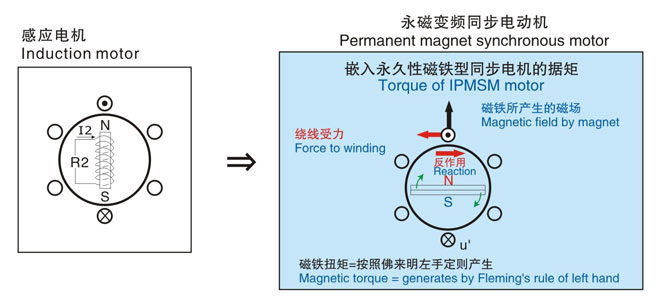 其構(gòu)造為內(nèi)嵌永久性磁鐵,無(wú)二次繞線,所以可將其損失控制在較低水平。
