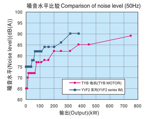 通過(guò)降低電機(jī)總損失,減少電機(jī)冷卻風(fēng)量,實(shí)現(xiàn)了比本公司YVF2系列變頻器專用IM更低噪音化。