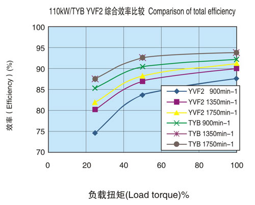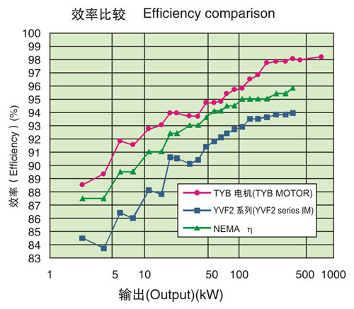 效率比高效電機(jī)NEMA標(biāo)準(zhǔn)值約提高3%左右,比本公司YVF2系列變頻器專用IM約提高5%左右。